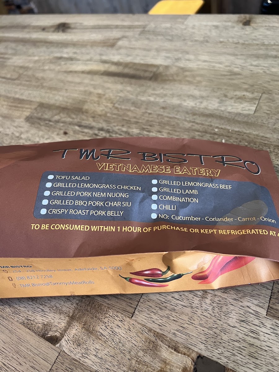RnB Vietnamese Roll Menu